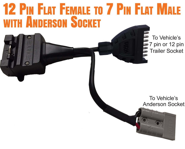 Whether you're planning a weekend getaway, a camping trip, or hauling goods, our 12 Pin Flat to 7 Pin Flat Adapter with Anderson Socket is the dependable solution you need for a smooth and secure towing experience. Invest in quality and compatibility – choose our adapter for your towing needs.