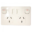 Double Pole & USB Power Point 10AMP - White is backordered and will ship as soon as it is back in stock.