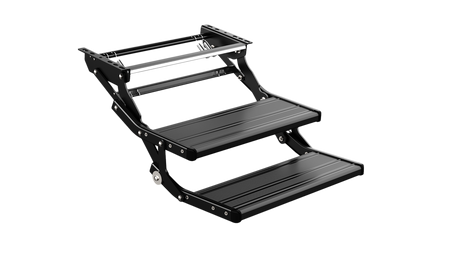 On the road RV Double Folding Manual Step with LED Light Black