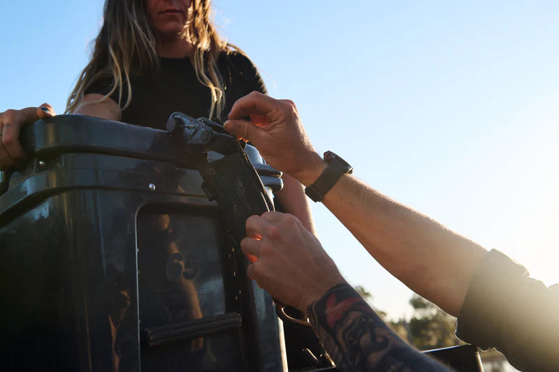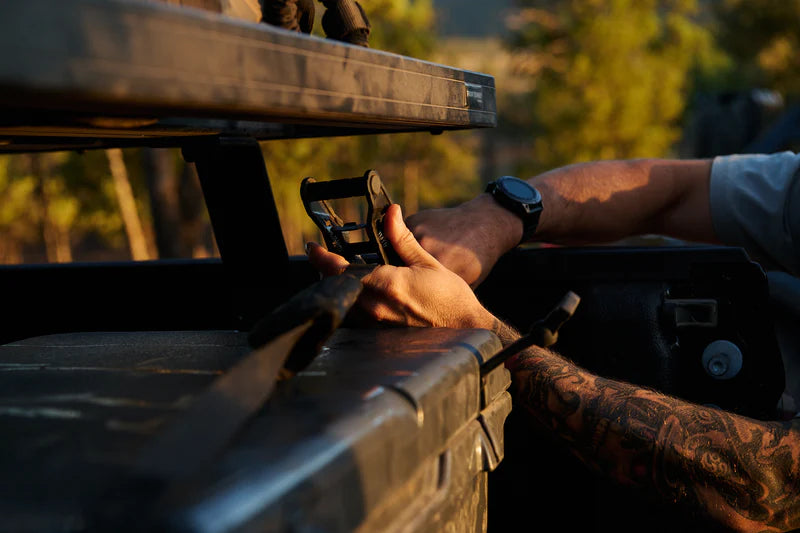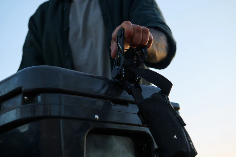 When the road gets rough, Nero + Flex Anchor keeps your load locked down tight. Designed to work in line with ratchet straps, this heavy-duty metal spring absorbs movement, prevents shock loading, and maintains constant tension so your gear stays secure no matter the terrain. Whether you're hauling heavy cargo or off-road in harsh conditions, Nero + Flex Anchor eliminates strap slack and reduces strain on anchor points, giving you a smarter, more reliable hold.