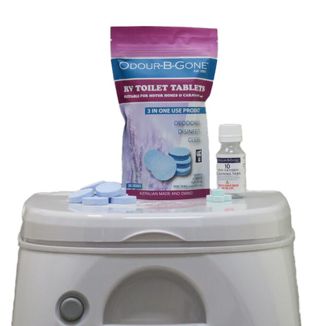 Odour B Gone 25x8g RV Toilet Tablets With 10x2g Mini Oxygen Tablets
