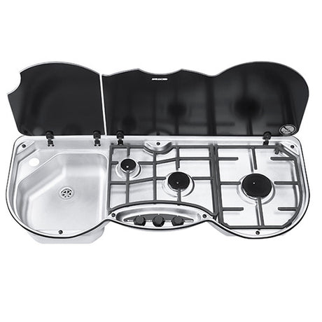 SMEV 3-Burner Stove and Sink Set – This caravan gas stove and sink set from SMEV features a smoked glass lid that only looks stylish but is heat resistant. This 3-burner hob and sink unit is easy to install and boasts a stainless steel finish for that ultimate aesthetic appeal. The heat resistant glass lids can be used as an additional workspace when not in use. The detachable pan makes cleaning a breeze.