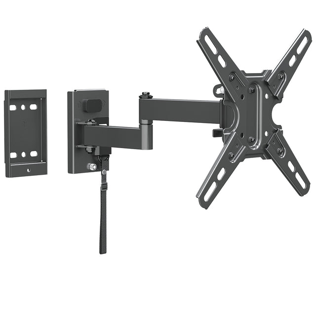 The TVBKT32 dual arm full motion wall bracket gives you the flexibility to adjust your TV to the perfect viewing angle. Designed to hold TVs ranging in size from 19” to 32”, with its locking latch, you can be confident that your TV is securely in place when the vehicle is moving. It comes with two wall plates, making it easy to move your TV and bracket to a different location. You can now set up your TV wherever you please with ease.