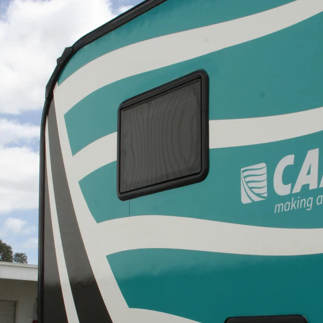 - Sleek Design: The contemporary, streamlined design complements the aesthetic of modern caravans, enhancing both functionality and style. Both the Camec Push Out Windows and roof hatches feature a standardised look and feel with integrated blinds and flyscreens.