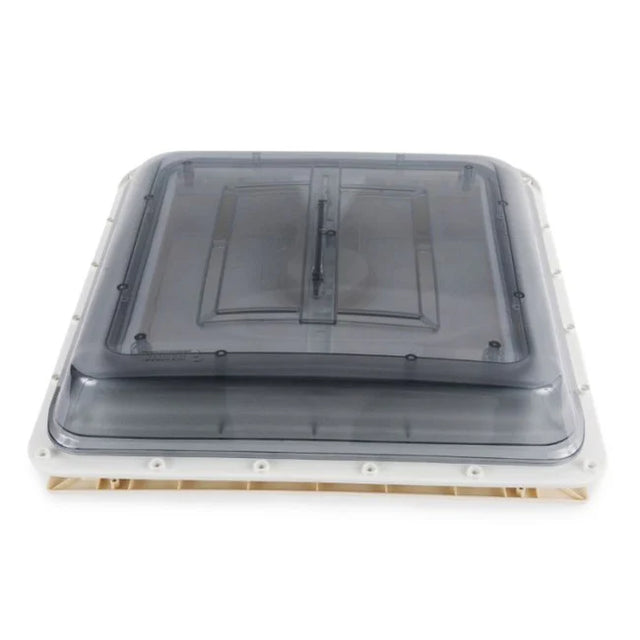 Simple and functional ventilation system. Can be left open while travelling and provides ventilation even when closed. This is a standard roof vent without fan. It hinges open with a winder operated from inside o your caravan or motorhome.