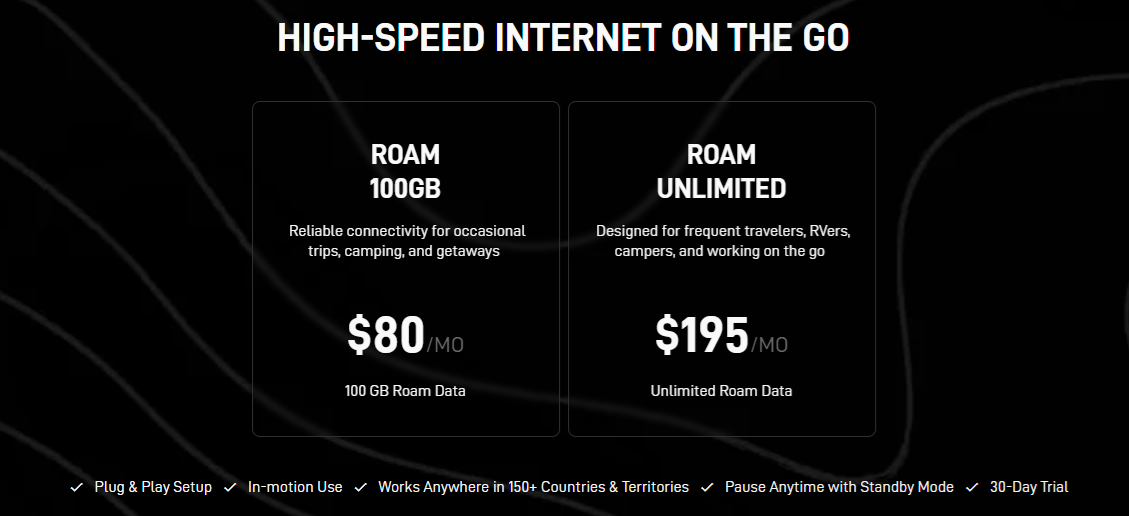 Note: A Starlink roaming plan is required. Receive one month free when you purchase through us.