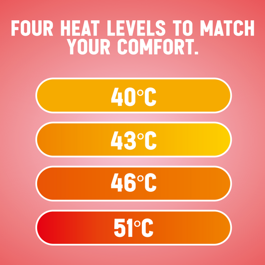 Lower temperatures (around 40–43 °C) give a gentle, soothing warmth that’s ideal for kids or sensitive areas.