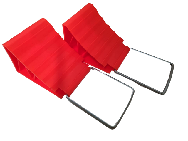 Protect your valuable wheel chocks with this pair of anti-theft wheel chocks, designed to safeguard your equipment when not in use. These chocks come with handles that fit snugly under your wheels, deterring theft and ensuring your chocks stay exactly where you left them.